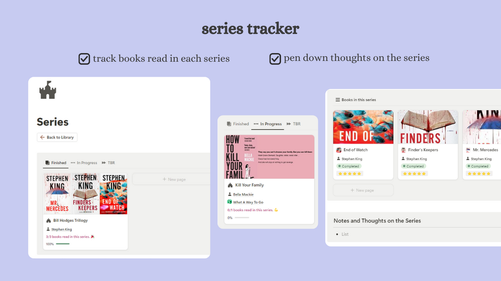 Track books read in each series and jot down your thoughts.