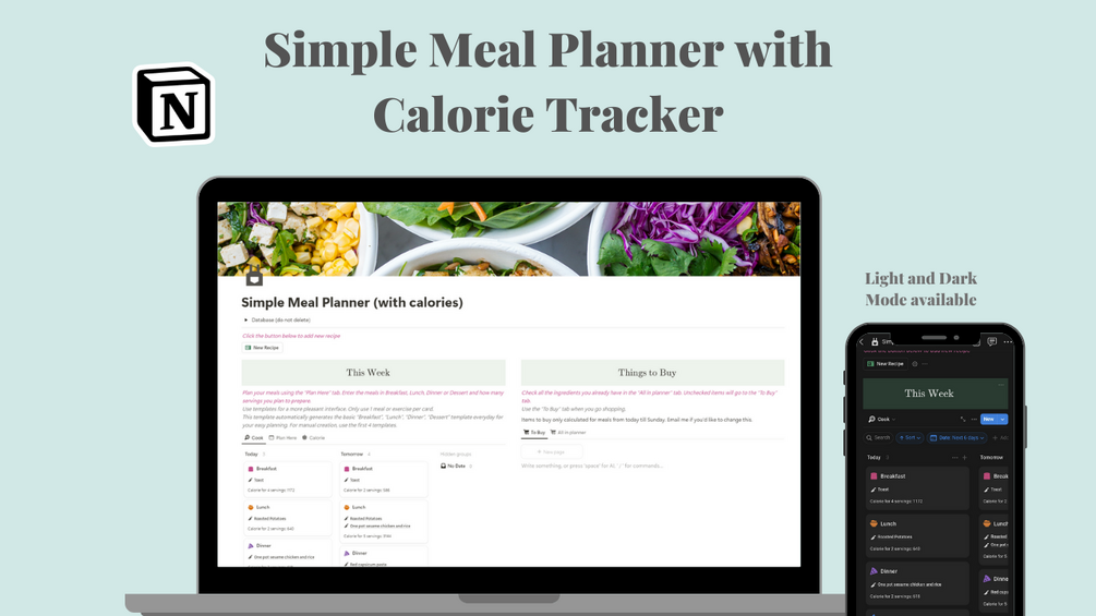 Simple Meal Planner (with calories) - Notion Template