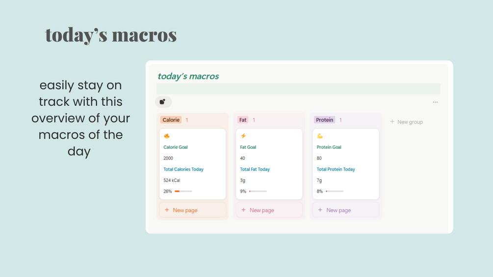 Set your macro goals and ensure you meet your macro goals everyday with the easy to see card.